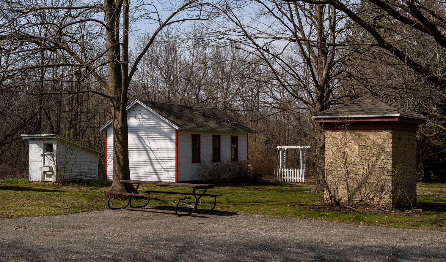 The limestone house, barn and smoke house were built by John Hackett in 1850-1851, from stone obtained from a nearly quarry. Records show that it became the property of members of the Bartlett Family in 1901, and by bequest to the Society in 1962.