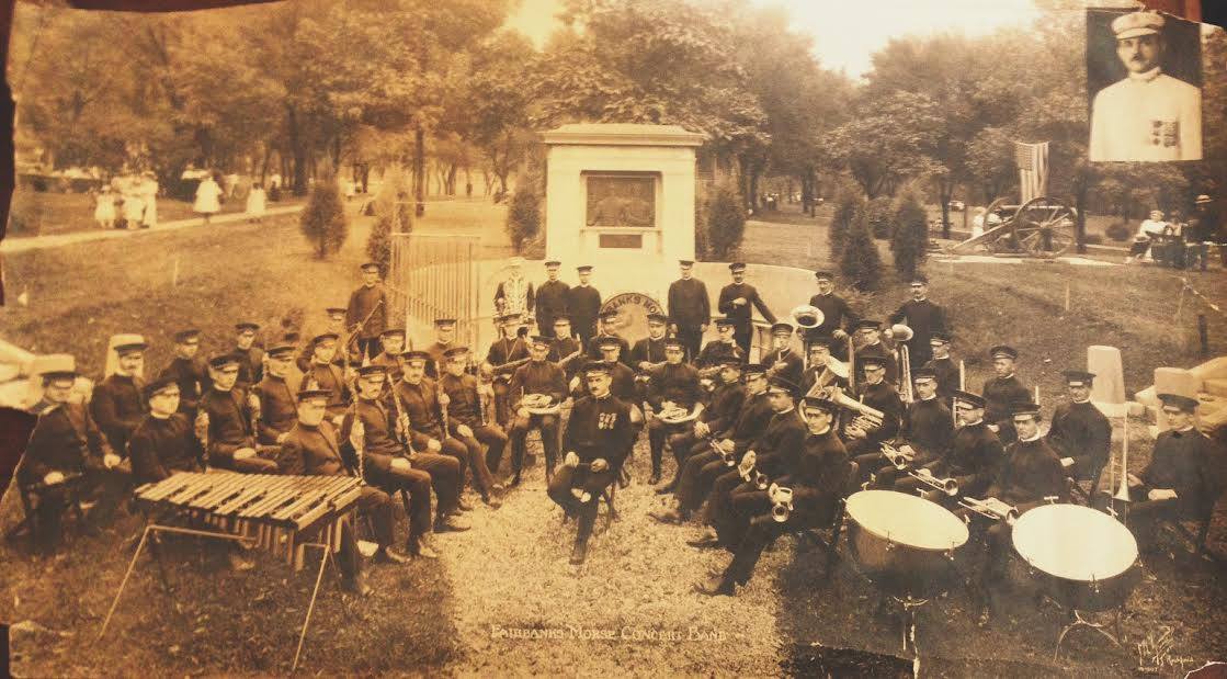 The cannon was placed in Horace White Park, as a Civil War Memorial. The dedication ceremonies, held on August 10, 1910, were attended by 1,000 Beloiters. The cannon was pulled by a three-team hitch, as it would have been pulled in action, down East Grand Avenue to Park, North on Park to Bushnell, and West on Bushnell (pausing before the First Congregational Church for prayers, and photographs), before turning into the center of Horace White Park. The cannon was then “permanently” placed near the west edge of Horace White (the site being southeast of the approximate place where Public Avenue dead-ends into Horace White Park). Photographs of the day show the crew of seven old veterans of the 4th Battery, proudly crewing the gun, as riders, and gunners, as they did similar guns during the Civil War. Accompanying and riding in front of the cannon was the original bugler of the 4th Battery, still remembering, after 45 years, his bugle calls, and blowing them as he did during the War. As the average age of the “boys” would have been well into their 60’s, and their average life expectancy at that time was in the 50’s, they were “senior citizens” under any description. The Beloit Daily News, made the following promise for Beloit:
