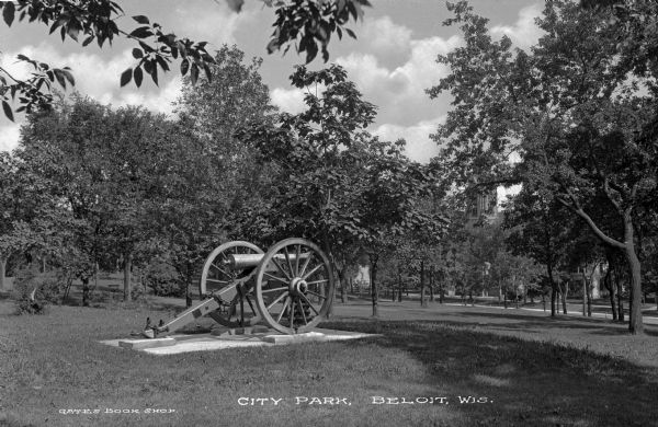 “Every city of any importance had a gun placed in the city park for use on festive occasions. Beloit had such a gun. The barrel was made of brass, and in its day it was the pride of the country side. Its uses were many, but the crowning event of the year was the firing of the giant piece on July 4.”